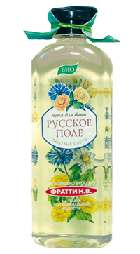Пена для ванны «Русское поле» полевые цветы с натуральными экстрактами ромашки, клевера, душицы, зверобоя, одуванчика обладает целебным эффектом, благодаря тщательно подобранным экстрактам лечебных трав. Разработанная нашими косметологами пена приготовлена на основе натуральных полевых цветов, собранных только в экологически чистых районах России. Входящие в состав пены травы обладают противовоспалительным, антибактериальным, успокаивающим, стимулирующим и смягчающим свойствами. Пена для ванны полевые цветы придает коже гладкость и эластичность.